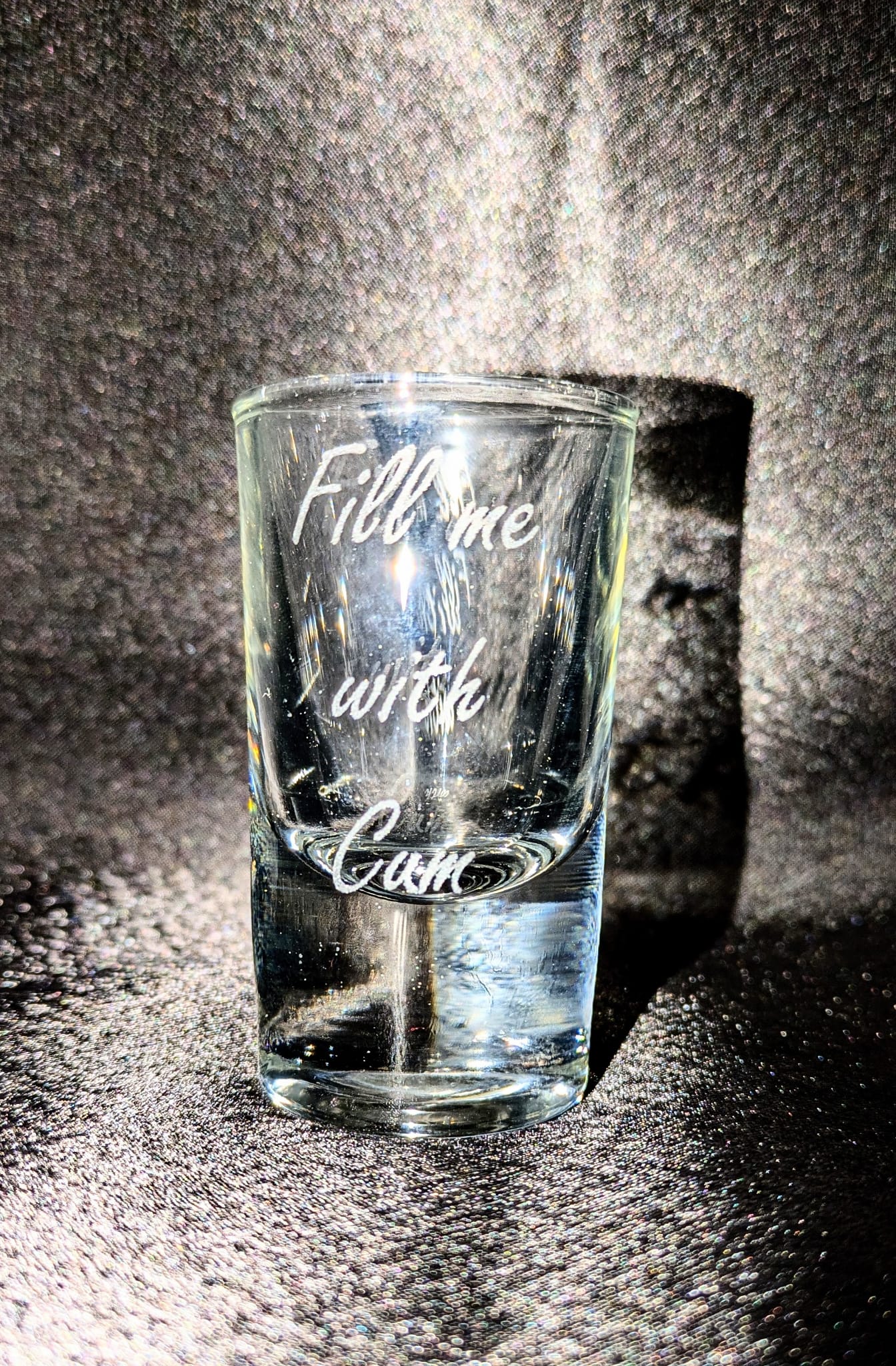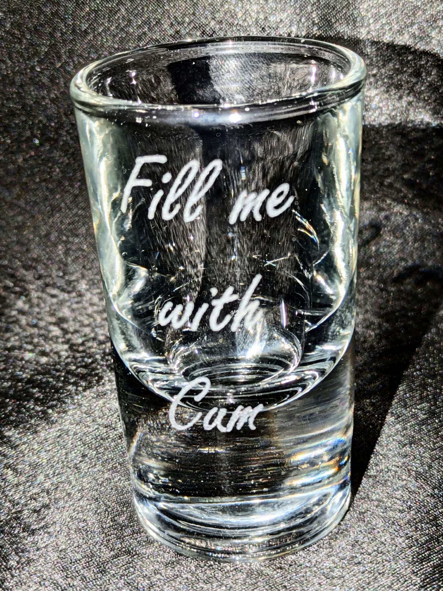 This engraved shot glass features the bold phrase: